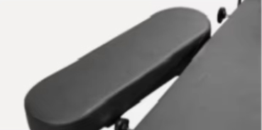 A prancha para pernas é controlada para dobrar para cima e para baixo por uma mola a gás.