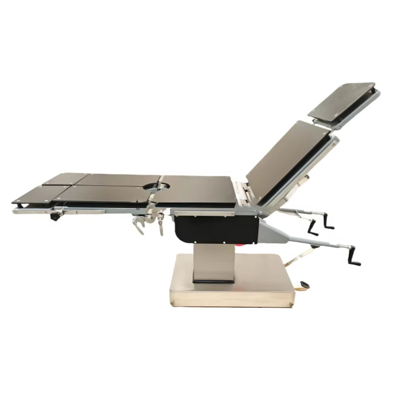 A mesa cirúrgica hidráulica para coluna YGS3008A é um dispositivo médico de alto desempenho, amplamente utilizado em diversas cirurgias, como coluna, cabeça e pescoço, tórax e abdômen, períneo, membros, obstetrícia, ginecologia, oftalmologia, otorrinolaringologia e ortopedia. A mesa cirúrgica consiste em uma cabeceira, um encosto, uma prancha para cintura, uma prancha para quadril e uma prancha para pernas divididas, com funções de ajuste flexíveis, incluindo dobramento para cima e para baixo, inclinação para frente e para trás, inclinação para a esquerda e para a direita do encosto e da perna, e controle preciso através da engrenagem de manivela, engrenagem helicoidal e sistema de rack para garantir a estabilidade e o conforto da posição do paciente durante a cirurgia. O sistema de elevação hidráulica é acionado por bomba hidráulica acionada por pedal, de fácil operação, estável e silenciosa, atendendo às necessidades de cirurgias que exigem ajustes frequentes de altura. O design da estrutura de camada dupla suporta a captação de raios X, facilita os exames de imagem e garante a precisão da cirurgia. A mesa cirúrgica adota um tampo de aço carbono revestido por spray e uma base e revestimento de coluna de aço inoxidável, que possui boa resistência à corrosão e durabilidade, garantindo o uso estável e de longo prazo do equipamento. O design geral concentra-se na segurança e estabilidade, proporcionando aos médicos uma plataforma operacional precisa, garantindo ao mesmo tempo a segurança e o conforto dos pacientes. É a escolha ideal para salas cirúrgicas com vários departamentos.